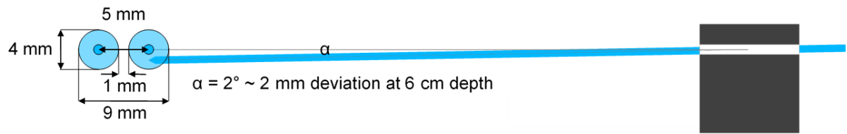 If electrodes are inserted through two adjacent grid holes 5 mm apart, the tips of the electrodes can be positioned in the prostate at a distance of 1 to 9 mm. The probability that they actually achieve a distance of 5 mm is low and would be pure coincidence. With a typical spacing of the electrodes of 15 to 20 mm and a typical size of the prostate of 30 – 40 mm transverse diameter, an inaccuracy of 5 ± 4 mm is completely unacceptable. Insertion of the electrodes via a standard brachytherapy grid is therefore unsuitable.